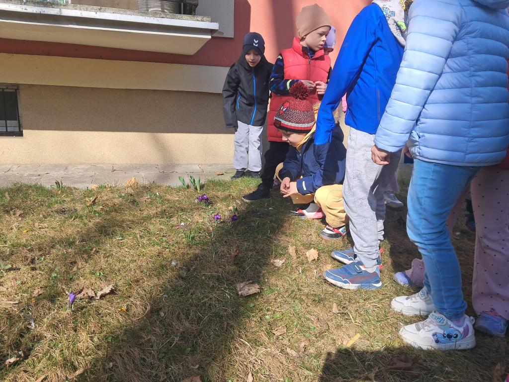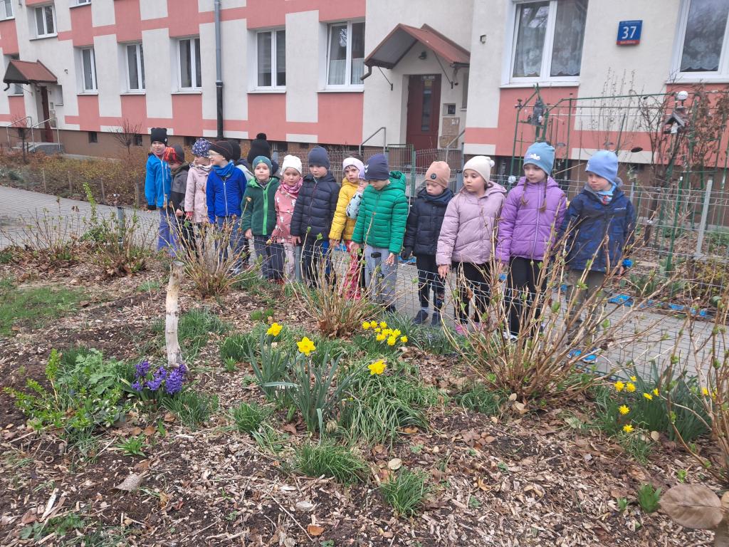 Przez cały marzec braliśmy udział w konkursie sportowym współorganizowanym przez nasze przedszkole „Bielańskie Przedszkolaki Maszerują 2026”, którego celem jest zachęcenie dzieci do regularnej aktywności fizycznej i spędzania czasu na świeżym powietrzu. Podczas codziennych spacerów nie tylko kształtowaliśmy nawyk codziennego ruchu ale również prowadziliśmy obserwacje przyrodnicze dostrzegając zmiany zachodzące wiosną w przyrodzie. Zauważyliśmy jak przez ten miesiąc zmieniły się drzewa, krzewy, roślinność w naszym najbliższym otoczeniu. Okazało się, że w pobliżu przedszkola rosną przebiśniegi, krokusy, żonkile, szafirki i wiele innych wiosennych kwiatów, a ostatniego dnia udało mam się zaobserwować pięknie kwitnące drzewa i krzewy. Zdobyliśmy wszystkie naklejki na konkursowym plakacie, a teraz czekamy na rozstrzygnięcie. Zapewne wybierzemy się jeszcze na niejeden spacer.