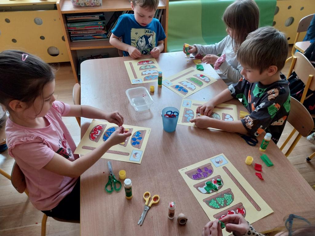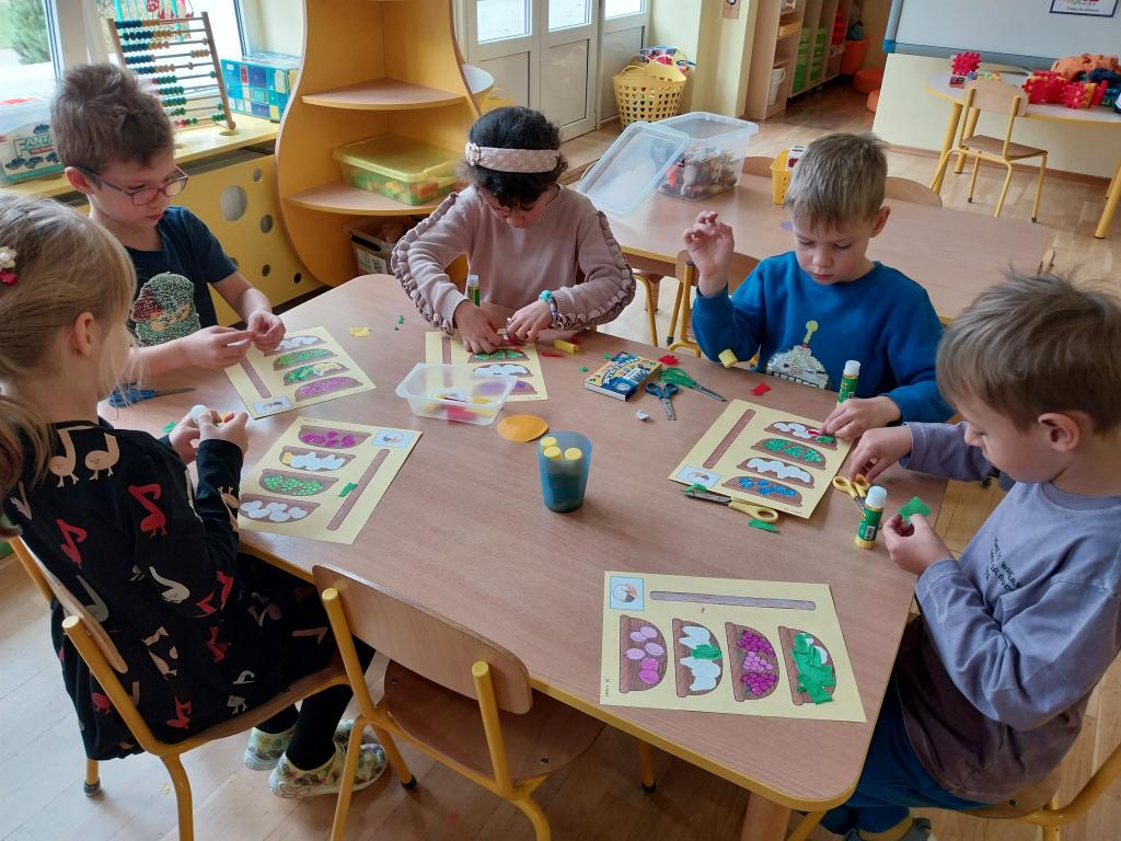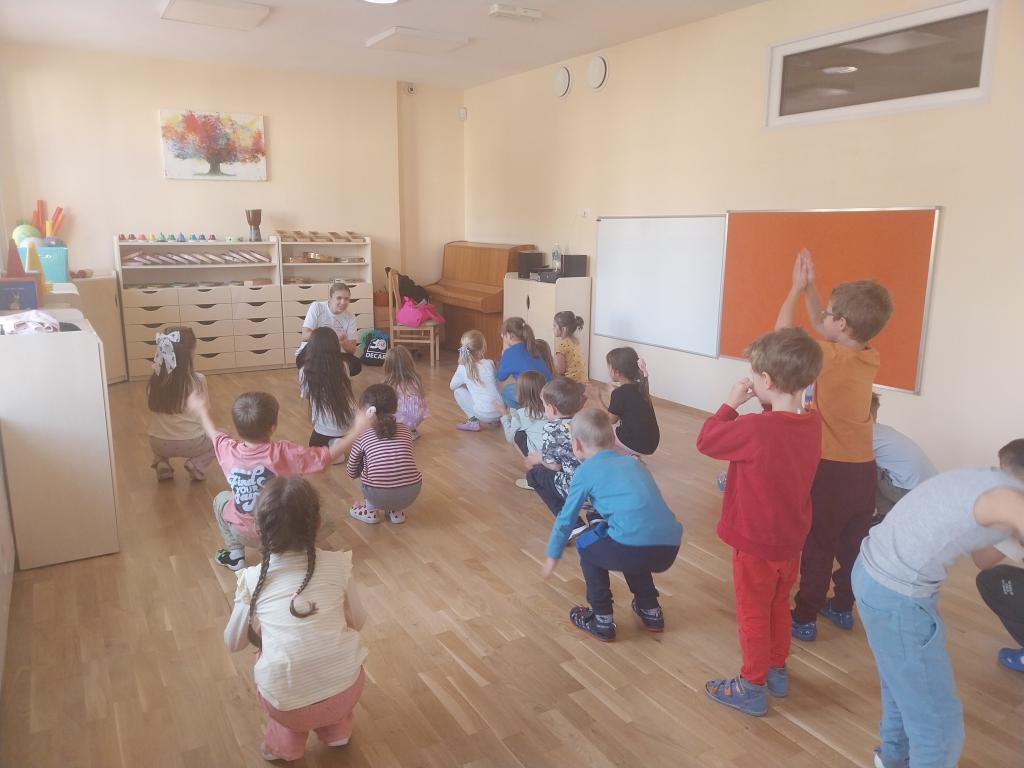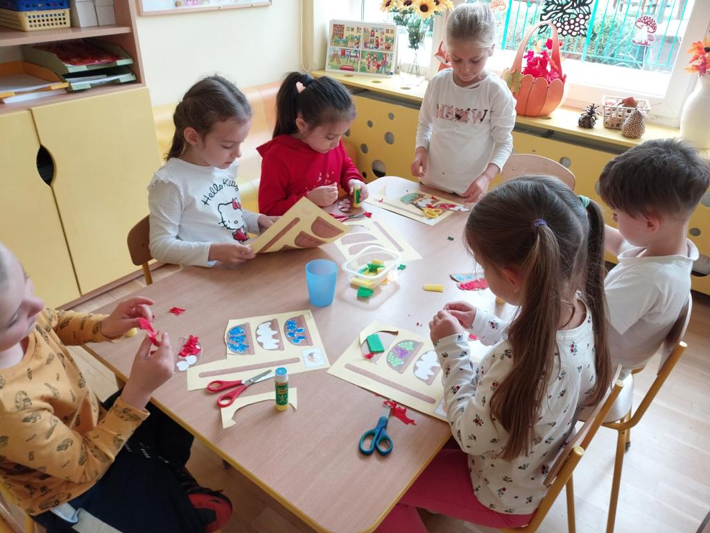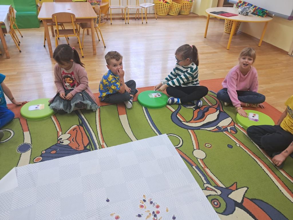 Słonka poznawały dary z sadu i z ogrodu. Rozróżniały, nazywały i klasyfikowały owoce i warzywa. Doskonaliły umiejętności rozpoznawania i nazywania drzew owocowych. Utrwalały nazwy owoców i warzyw. Dowiadywały się, która część warzyw jest jadalna. Poznawały jak ważne jest spożywanie owoców i warzyw. Podczas  zabaw dzieci utrwalały pojęcia matematyczne, ćwiczyły przeliczanie, utrwalały kształty i kolory. Poznawaliśmy i śpiewaliśmy piosenki o tematyce jesiennej. Dzieci wykonywały prace plastyczne, rysowały, kolorowały oraz malowały farbami. Odbyła się również degustacja owoców.