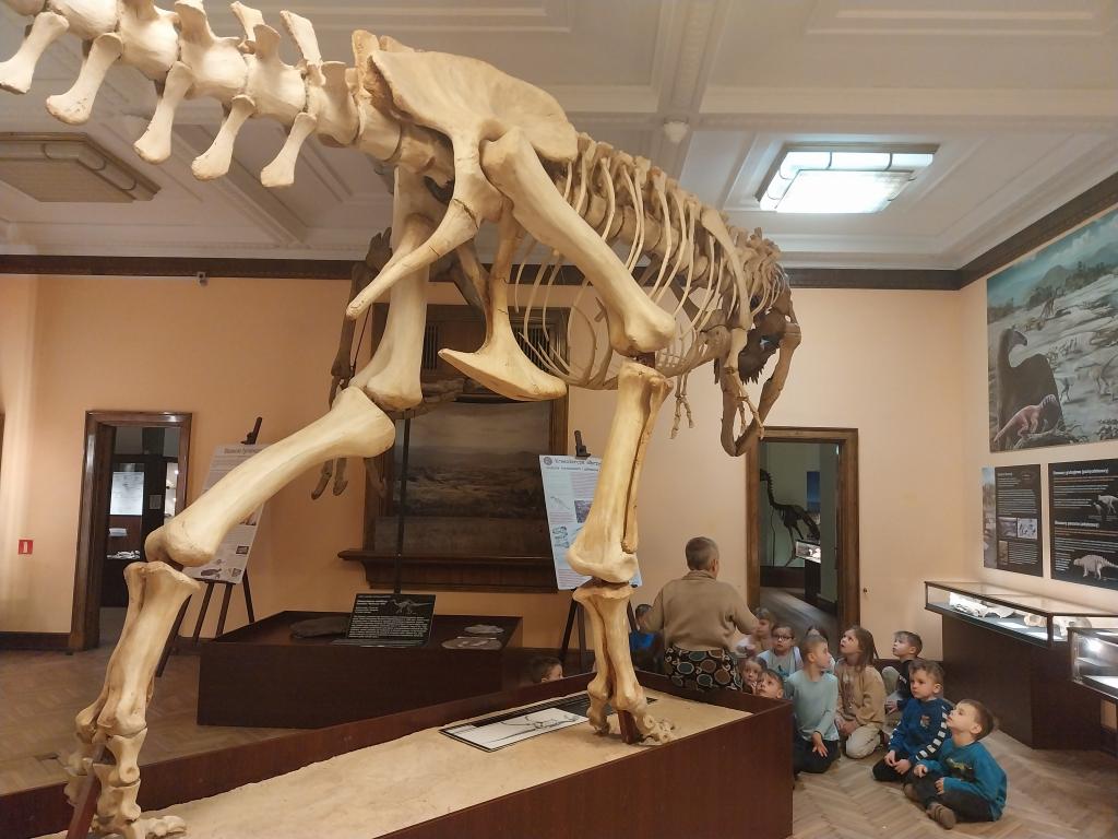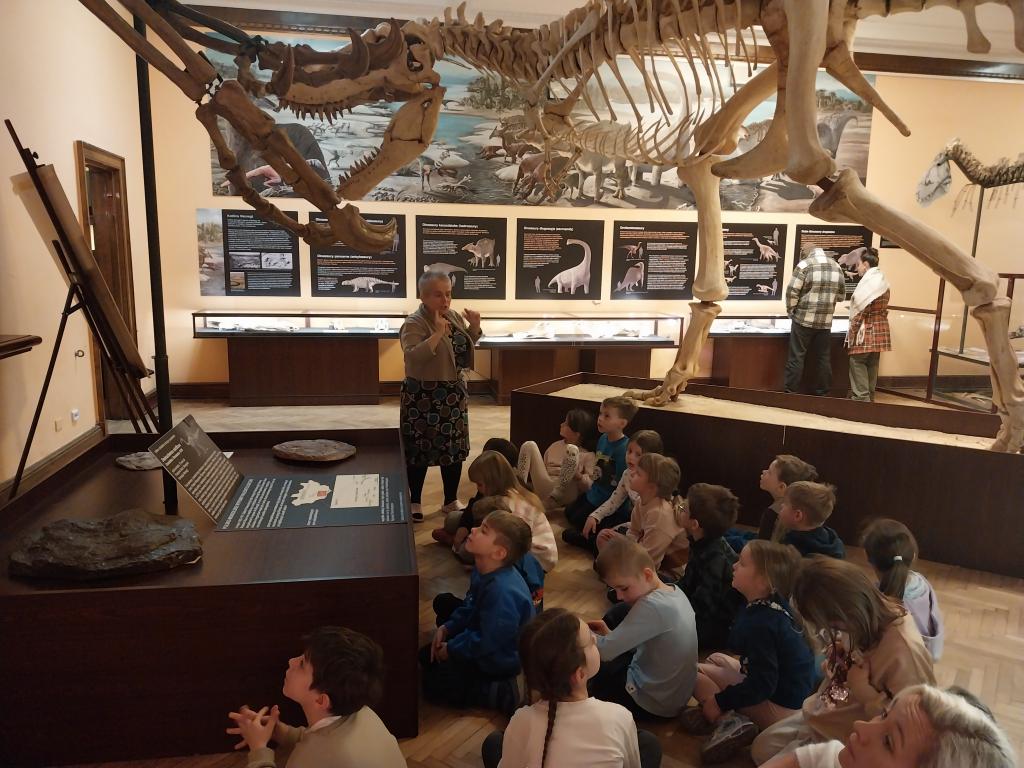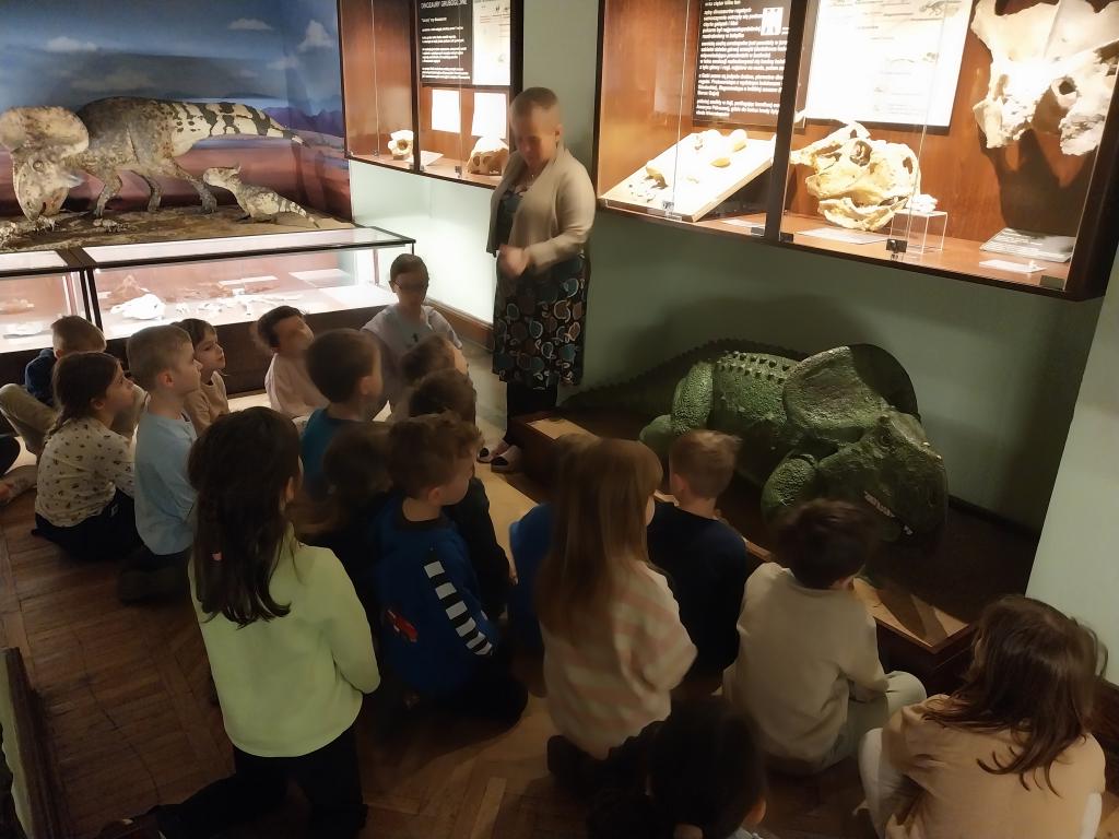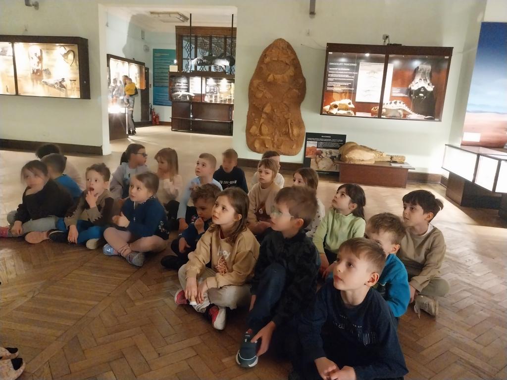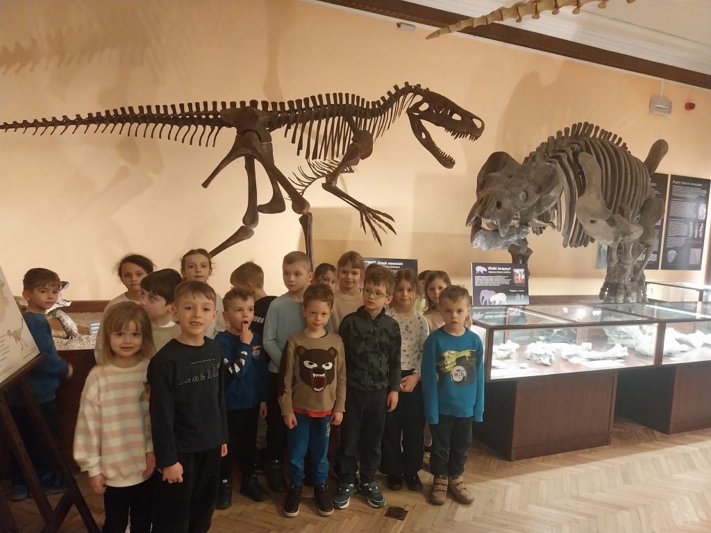 5 marca wybraliśmy się na wycieczkę do Muzeum Ewolucji. Słonka dowiedziały się, jak wyglądało życie miliony lat temu. Poznały zawód paleontologa, który zajmuje się badaniem skamieniałości roślin i zwierząt żyjących miliony lat temu. Paleontolodzy badają przeszłość ziemi w tym dinozaury, w celu odtworzenia historii ewolucji życia na Ziemi. Dzieci zdobyły wiedzę na temat życia dinozaurów, ich gatunków oraz przystosowania do życia. Poznały dinozaury mięsożerne i roślinożerne. Słonka z wielkim zainteresowaniem oglądały rekonstrukcje szkieletów wielkich dinozaurów. Oglądaliśmy ekspozycje okazów i zwierząt wodnych oraz lądowych. To była bardzo pouczająca wycieczka.