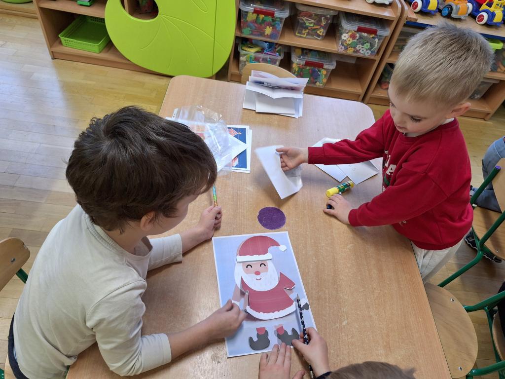 Uważnie słuchamy listu od MikołajaOtrzymujemy pierwsze zadanieSłuchamy co musimy zrobić aby wykonać poprawnie zadanieWspólnie wykonujemy zadanieWspólnie rozwiązujemy zadaniaOtwieramy kopertę z kolejnym zadaniemSzukamy kolejnej podpowiedzi i zadania do wykonaniaSłuchamy kolejnego zadaniaUkładamy puzzlesprawdzamy czy udało nam się zdobyć wszystkie elementy stroju MikołajaUbieramy MikołajaOtrzymujemy prezenty na zakończenie zabawyDzieci otrzymują drobne prezenty za wspólną zabawę