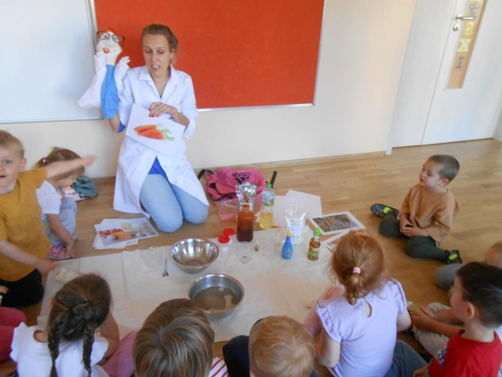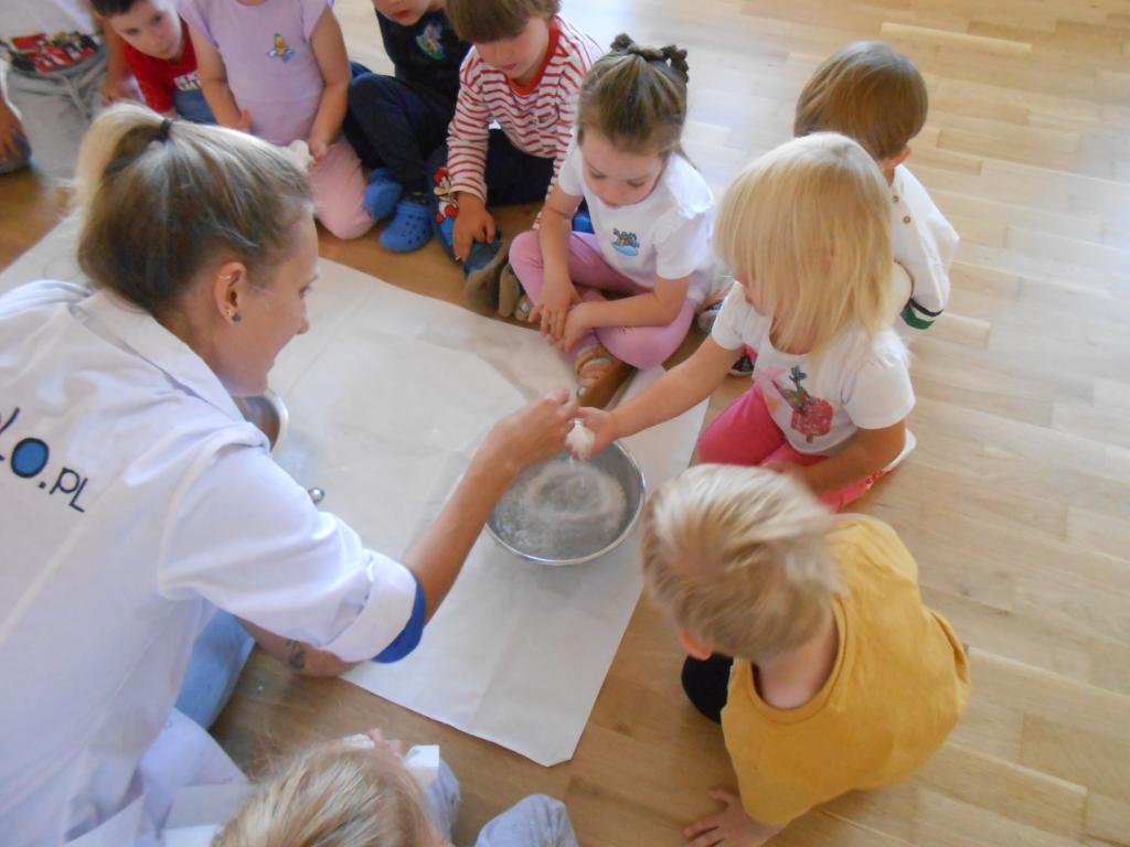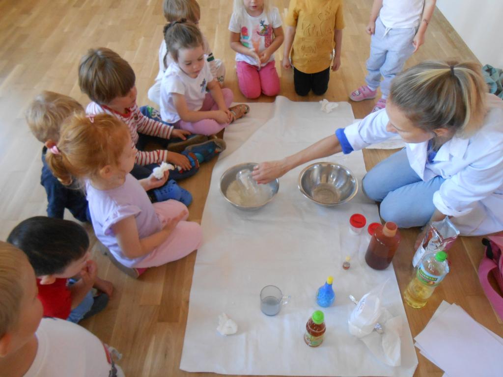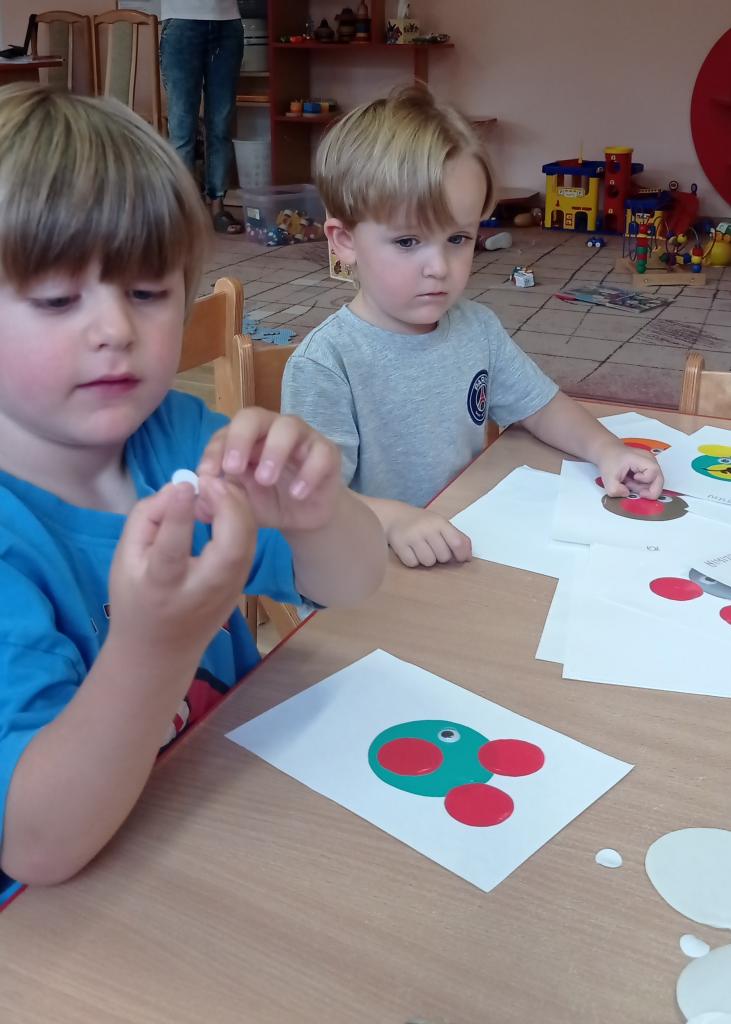 Wrzesień to czas poznania przedszkola oraz adaptacji. Cały czas dzieci przyzwyczajają się do pań oraz przedszkola, a panie poznają dzieci. Biedroneczki świętowały już Dzień Kropki, Dzień Jabłka połączony z festynem rodzinnym Pożegnanie lata oraz Dzień Przedszkolaka. Dzieci uczą się nowych piosenek: ,,Miś idzie do przedszkola”, ,, To ja” oraz ,,Bezpieczne przejście”. Ćwiczyliśmy przechodzenie przez pasy na zielonym świetle. Dzieci uczestniczyły już w zajęciach rytmicznych oraz zajęciach z języka angielskiego, świętowaliśmy urodziny Fiodora. 23 września we wtorek powitaliśmy jesień Dniem Spadającego Liścia. W tym dniu dzieci bawiły się przy piosence ,, Kolorowe listki”, malowały jesienne liście. W środę 24 września Biedroneczki uczestniczyły, pierwszy raz, w zajęciach badawczych Labo Odkrywcy. Poznały Pana Labolka, zapoznały się z pojęciami: naukowiec, laboratorium oraz poznały rolę witamin w życiu człowieka. Codziennie jeżeli pogoda pozwala wychodzimy na plac zabaw w ogrodzie przedszkolnym. Dzieci uczą się ustawiania i chodzenia w parach oraz w pociągu- w szeregu, samodzielności, uczą się zasad zachowania w czasie krótkich zajęć i zabaw.