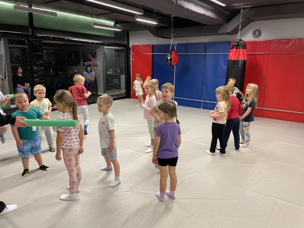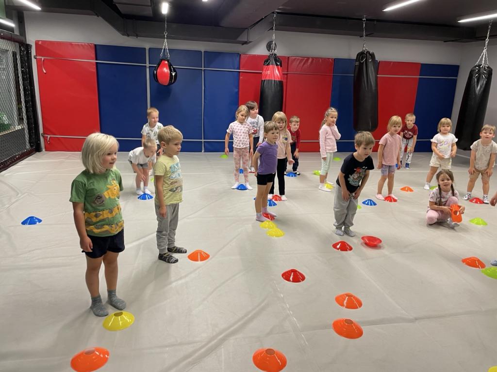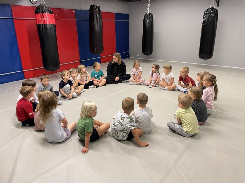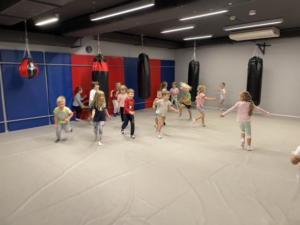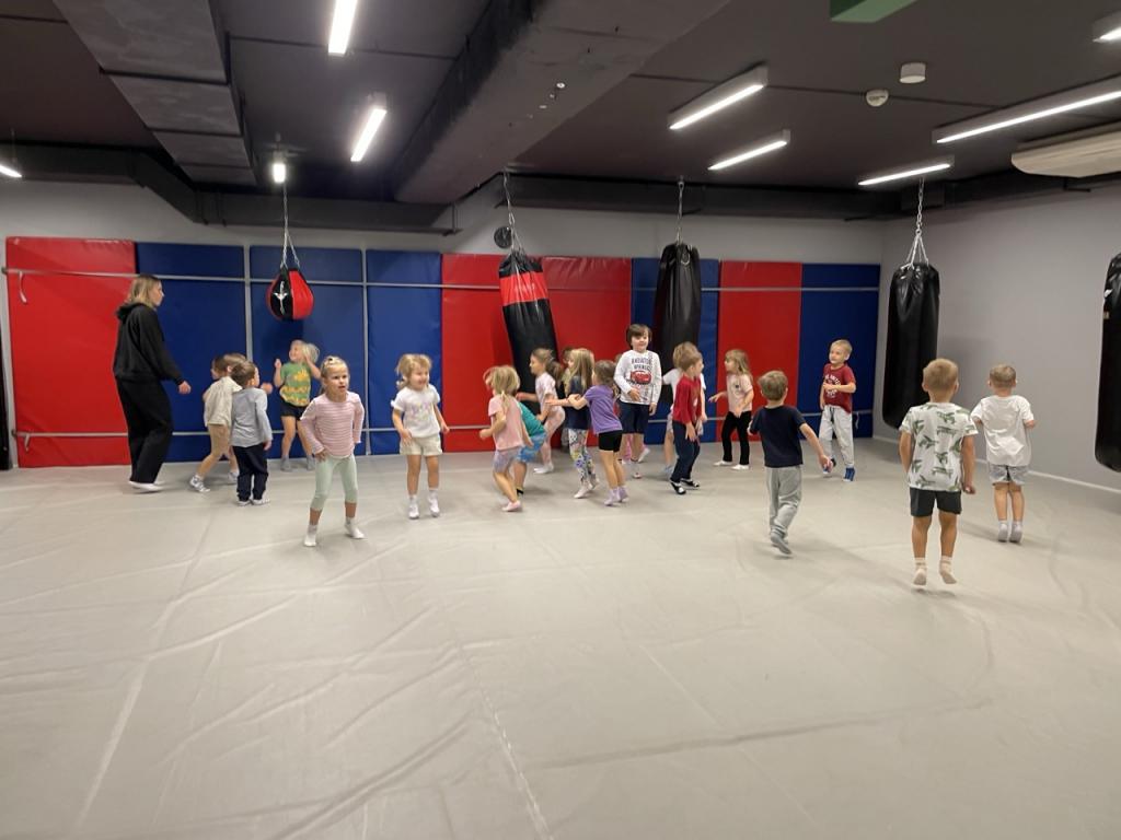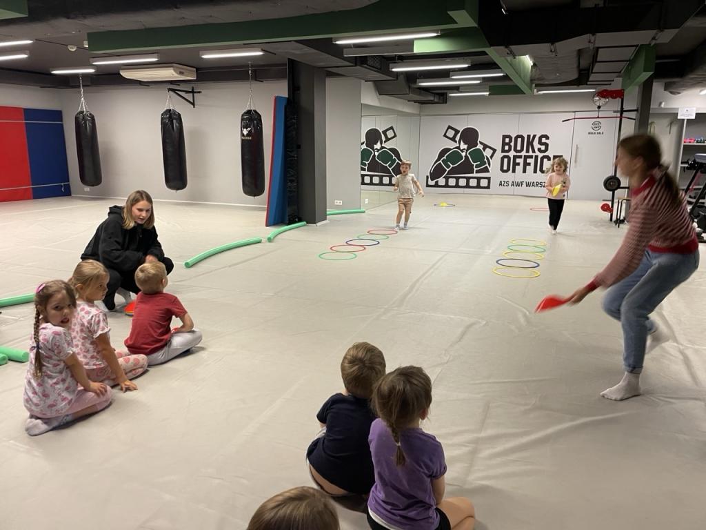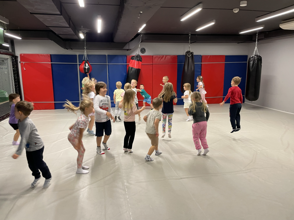 Tego dnia „Żabki” wzięły udział w swoich pierwszych zajęciach sportowych na Akademii Wychowania Fizycznego! Pełne energii i dobrych humorów, przeszły spacerkiem z przedszkola na teren uczelni, gdzie czekała na nie przestronna sala gimnastyczna i mnóstwo ruchowych aktywności. Pod okiem trenerek, dzieci brały udział w różnorodnych zabawach ruchowych i ćwiczeniach ogólnorozwojowych, które rozwijały koordynację, równowagę i współpracę w grupie. Prowadzące przygotowały również tor sprawnościowy, podczas którego dzieci ćwiczyły skakanie obunóż oraz omijanie przeszkód slalomem. Przedszkolaki świetnie poradziły sobie z każdym zadaniem, kończąc zajęcia z uśmiechem na twarzy :)