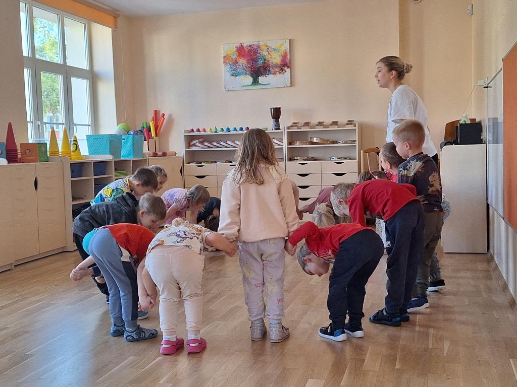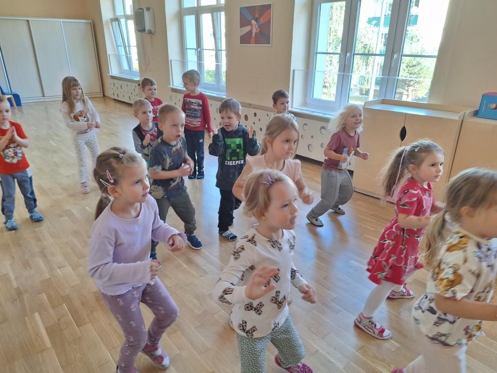2 października Żabki wzięły udział w zajęciach tanecznych. Zumba Kids pozwala dzieciom odkrywać taniec i aktywność fizyczną w przyjaznej atmosferze. Podczas zajęć dzieci tańczą do muzyki, wykonując proste choreografie dostosowane do ich możliwości, bawiąc się w rytm piosenek i uczestnicząc w grach ruchowych.Pani instruktor zachęca dzieci do swobodnego wyrażania siebie poprzez ruch, co sprzyja rozwojowi poczucia rytmu, świadomości własnego ciała i koordynacji. Żabki uwielbiają tańczyć i już czekają na kolejne zajęcia!